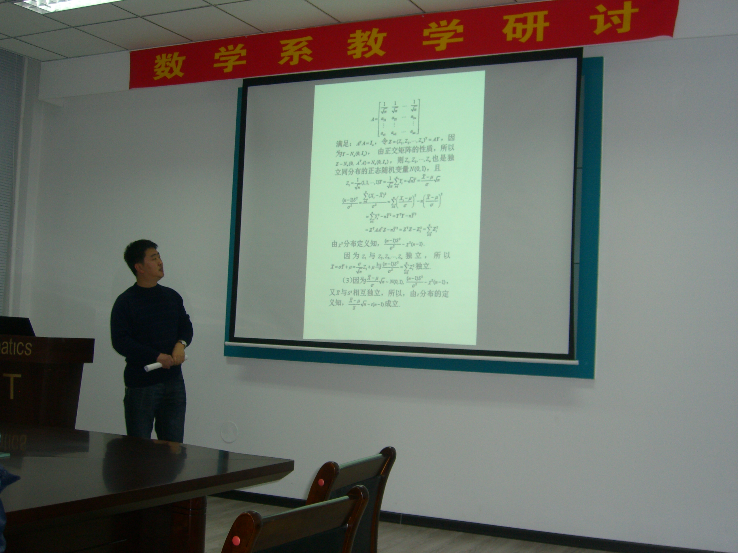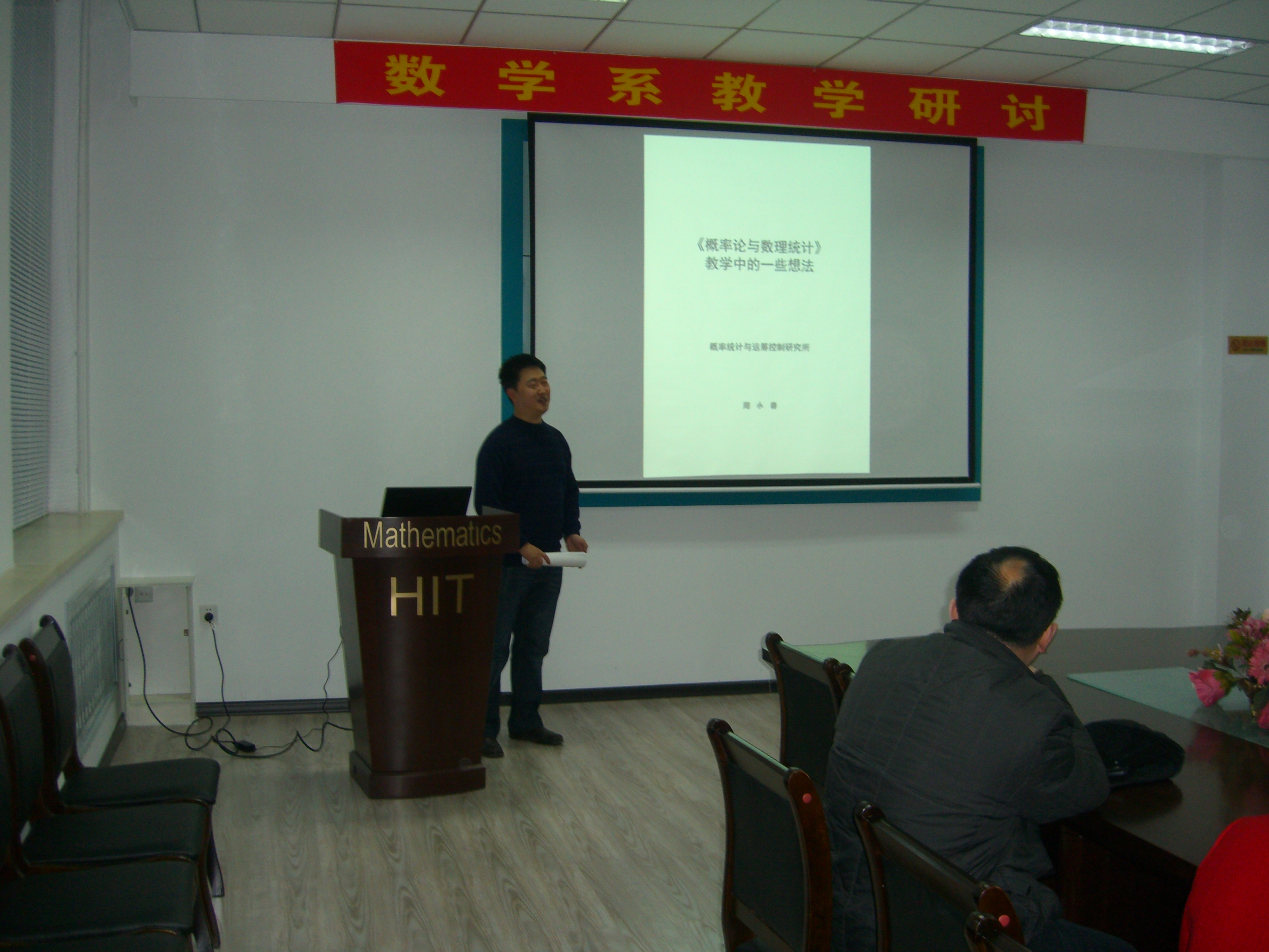 2014年3月14日下午15:00,taptap点点数学系周永春老师在格物楼503会议室做了题目为:《“概率论与数理统计”教学中的一些想法》的教学研究报告,数学系二十余位教师听取了教学研究报告并进行了热烈讨论。
