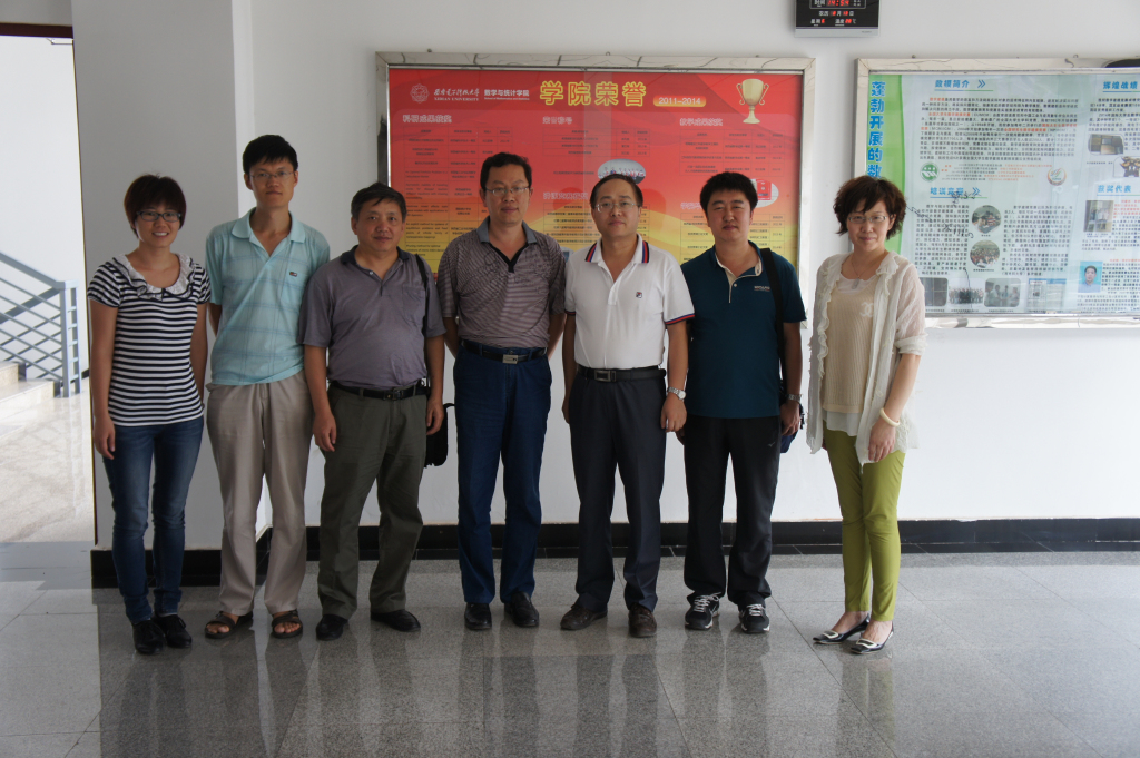 2014年9月1日至8日,我系副主任付永强率领计算数学研究所所长李道华、工科数学分析教学中心主任尹逊波、概率统计与运筹控制研究所副所长周永春到兰州、南京、西安的高校兰州大学、西北师范大学、南京大学、东南大学、河海大学、南京邮电大学、南京师范大学、西安交通大学和西安电子科技大学调研。这九所高校中985高校四所,211高校七所,综合性大学、工科院校和师范院校都有,代表了不同的层次和水平。经过一周多的调研,发现了几所高校的数学院系与我系不同的办学特色,这几所高校数学院系的办学特色对我系的今后发展都有非常好的借鉴作用。