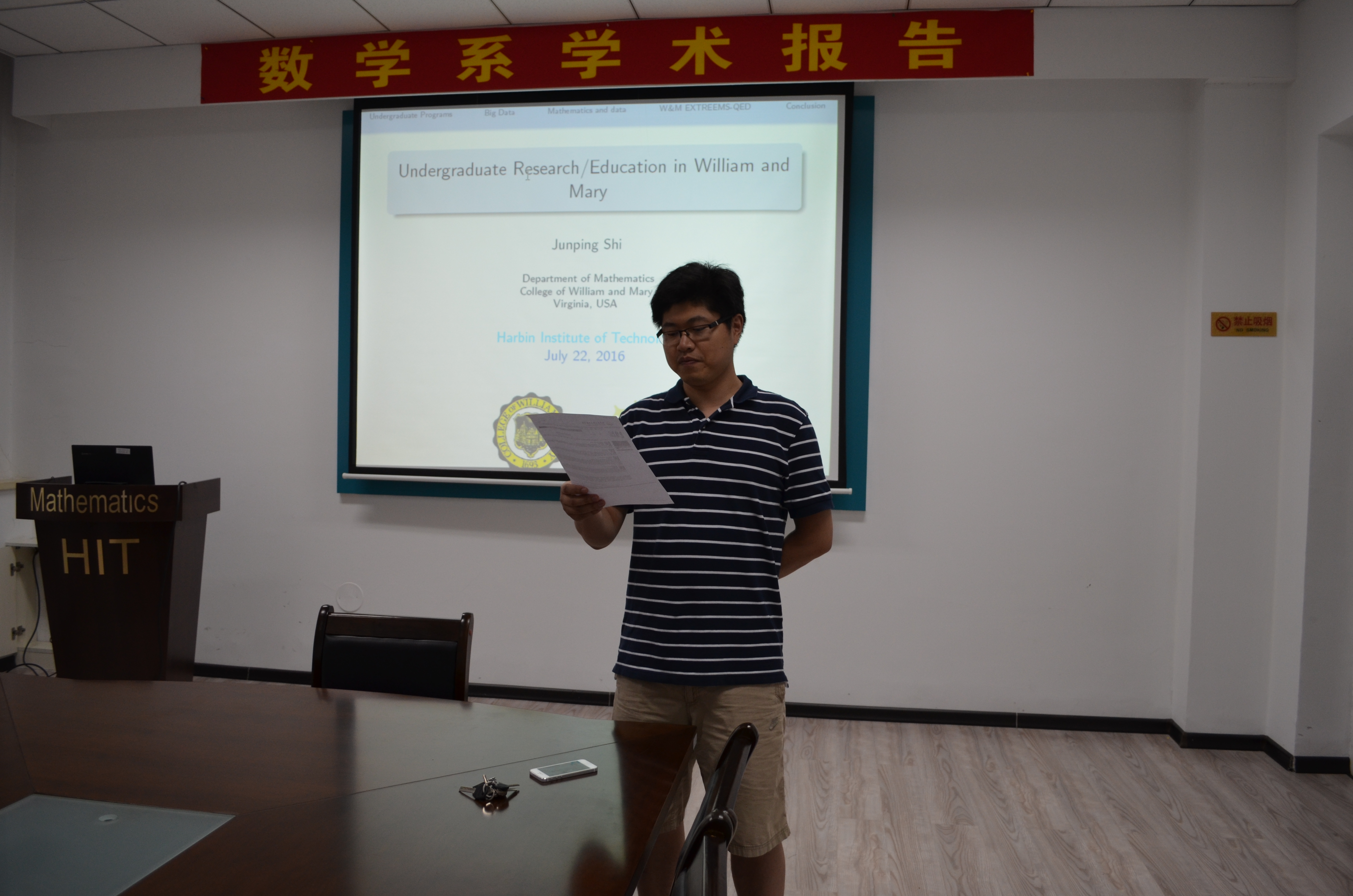 2016年7月22日下午,美国威廉玛丽学院史峻平教授在数学系会议室(格物楼503)做了2两场精彩的报告,题目分别为:《数据科学,计算数学和生物数学的本科生教育和研究》《Global Extinction of Population with Allee effect in Advective Environment》,报告由方健教授主持,数学系10余位师生听取了报告并进行了热烈的讨论。
