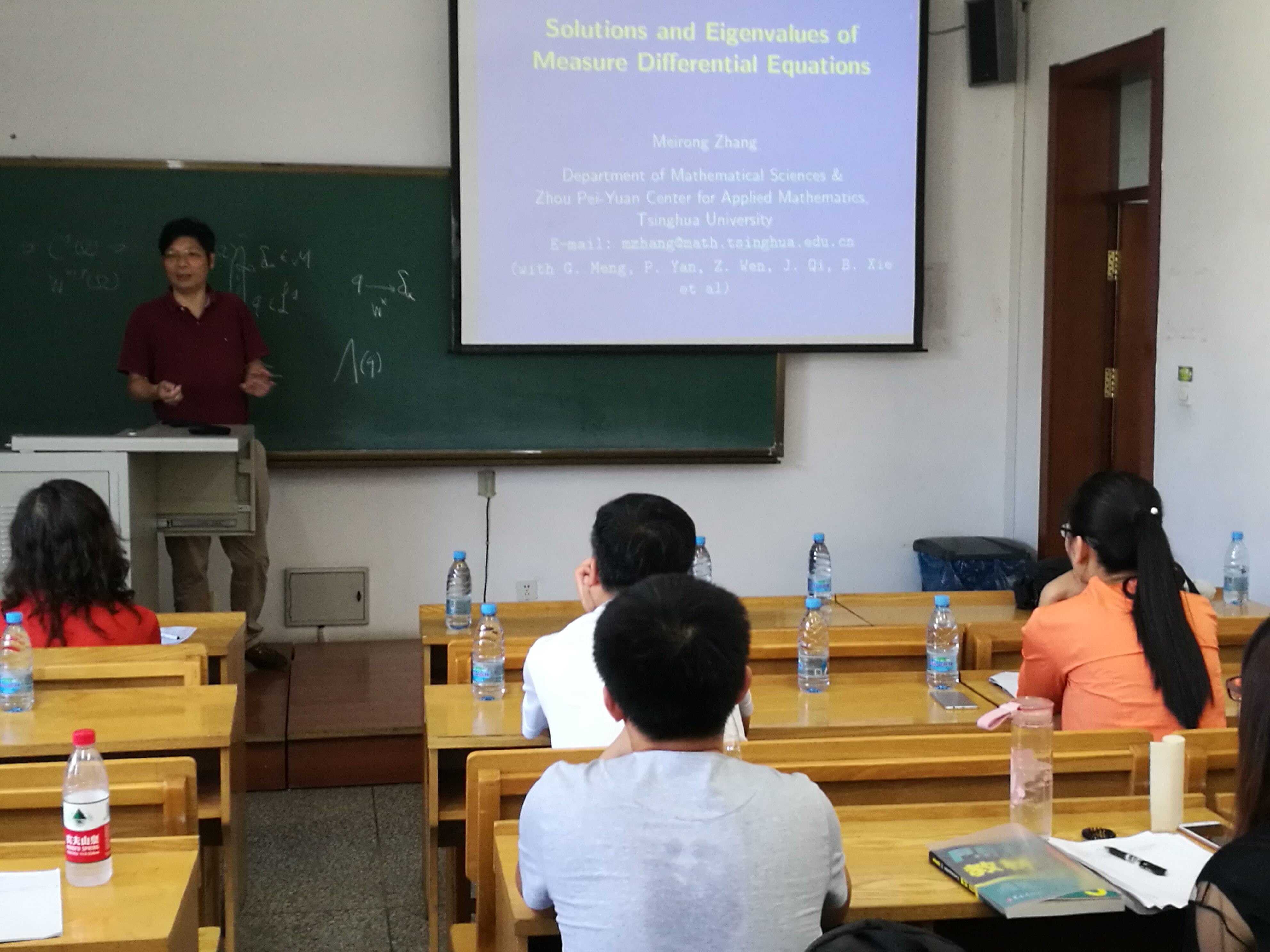 应数学系的邀请,清华大学数学科学系章梅荣教授近日访问了taptap点点,并于7月11日10:00-11:00在正心楼308作了题为Solutions and Eigenvalues of Measure Differential Equations (I)的精彩报告。20余位师生认真听取了章教授的报告,并参与了提问和讨论。