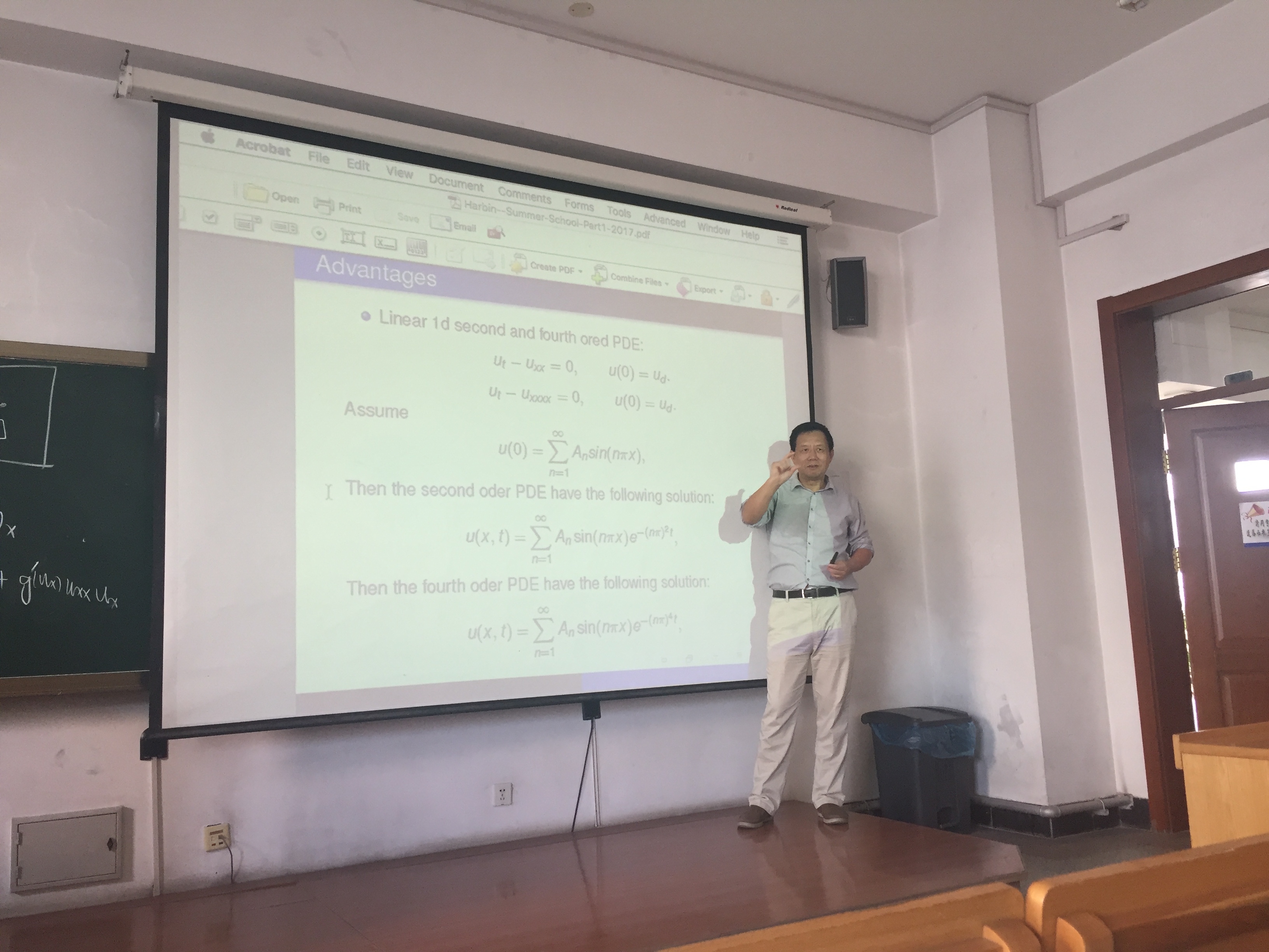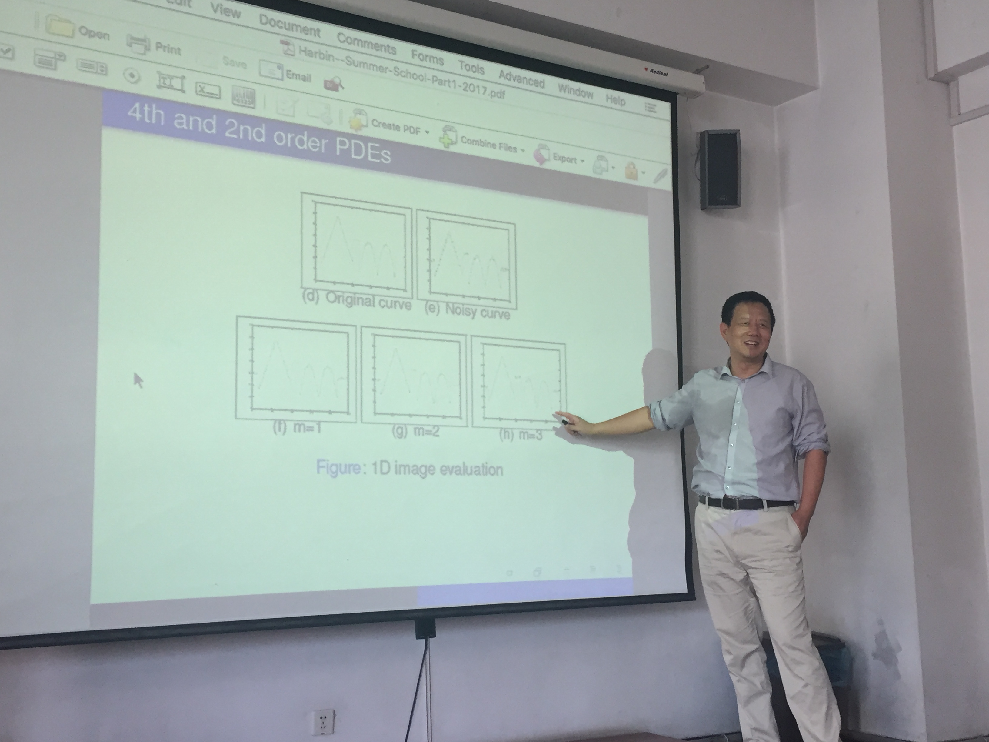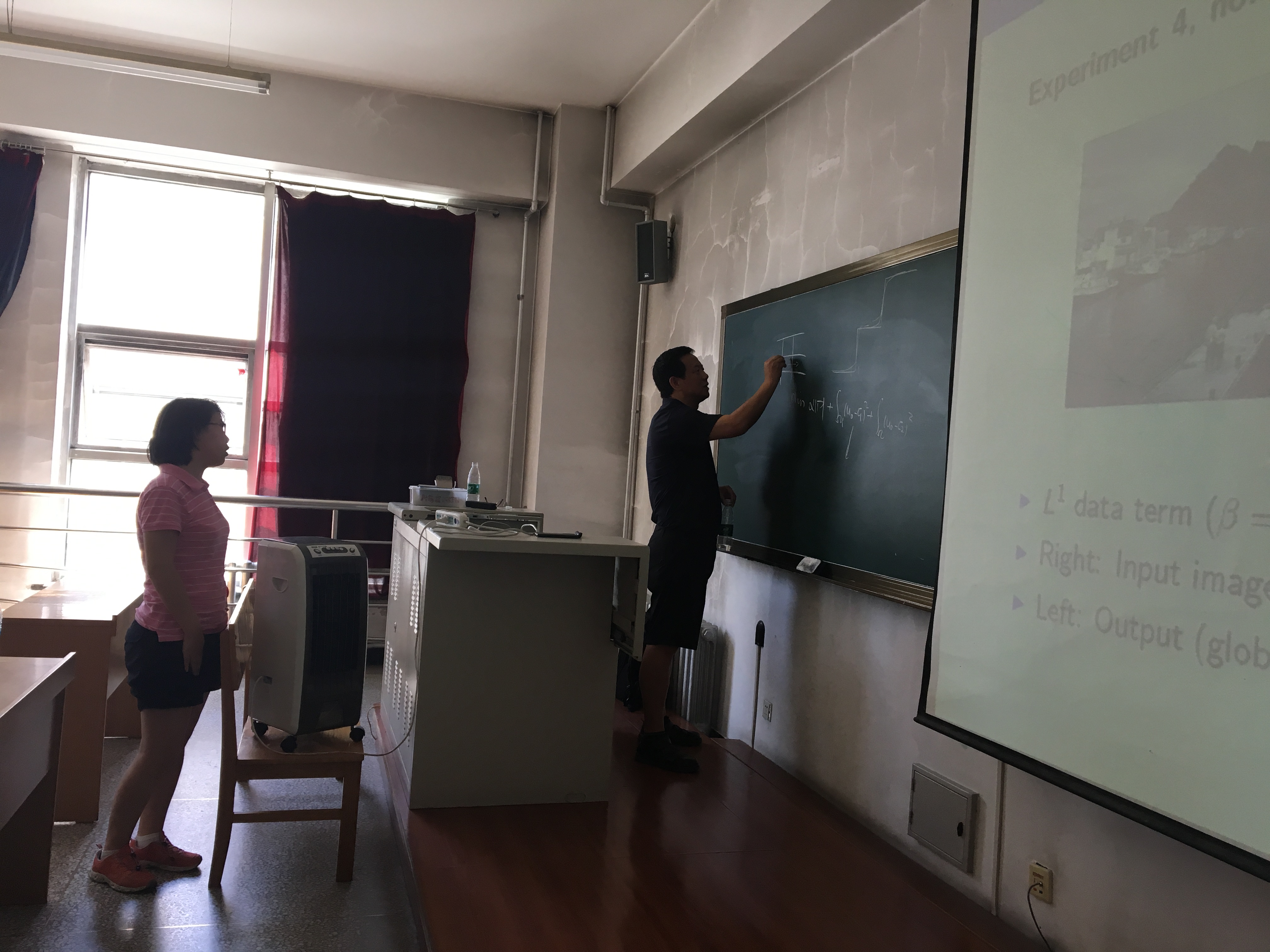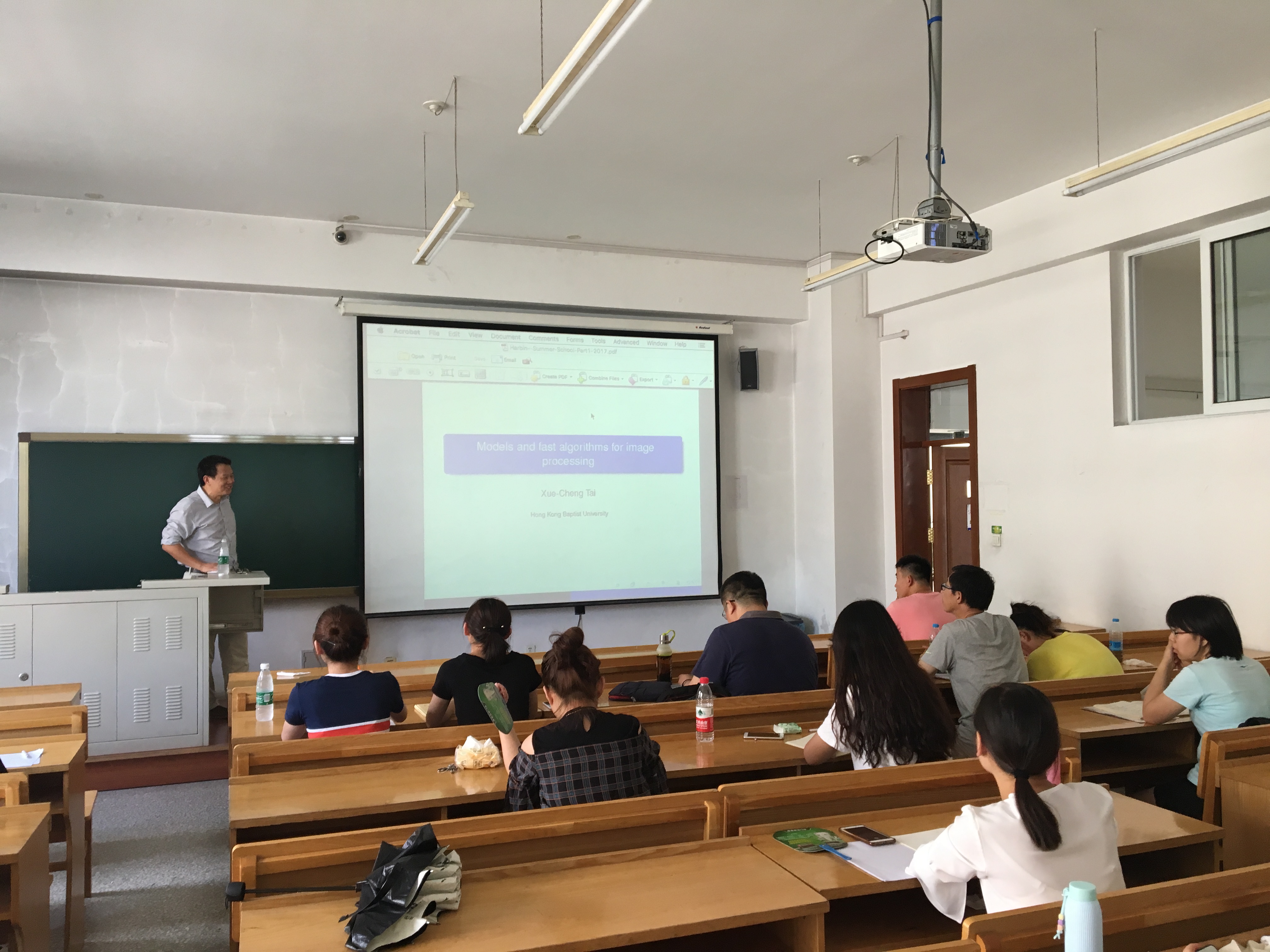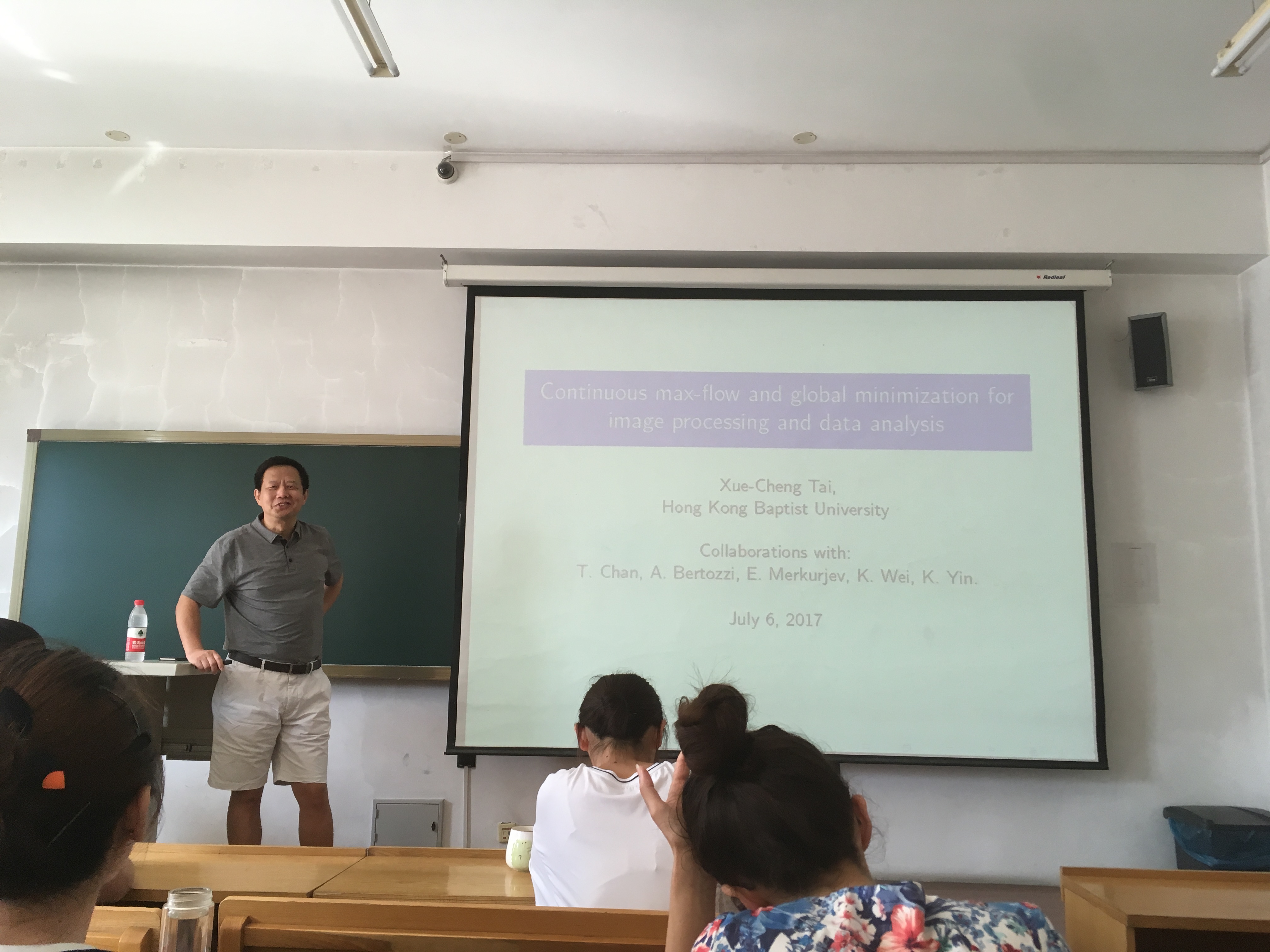 应taptap点点官方网站数学系的邀请,图像处理领域国际著名学者台雪成教授于2017年7月12-19日访问taptap点点并作图像处理系列报告。来自校内外的学者和师生共50余人参加了此次学术报告和讨论。 此次系列学术报告以“Variational Models and Fast Numerical Schemes in Image Processing and Computer Vision”为主题,着重讨论了图像分割领域中的变分模型和相应的快速算法。台雪成教授从4个方面为与会师生介绍了图像处理领域中的众多问题和解决方法。 第一次报告主要介绍图像处理领域中的基本概念,包括图像恢复、图像分割等内容的定义以及目前面临的核心问题;第二次报告介绍了图像处理领域中的数学基础内容,例如偏微分方程、变分原理、有界变差等内容; 第三次报告回顾了图像处理领域中的经典问题和经典模型,例如用于图像恢复的ROF模型、MS模型、Euler’s Elastica模型等等;第四次报告主要围绕高阶偏微分方程以及其他基于几何性质的图像处理模型; 第五次报告讨论了图像处理的数值模型和方法,从最简单的梯度下降方法开始,台教授一步一步为在座师生介绍了算子分裂方法、AOS格式、对偶算法等传统数值算法;第六次报告则围绕目前较为主流的算法,例如分裂Bregman迭代、增广拉格朗日乘子法等算法进行讨论; 第七次报告台教授主要讲解了目前图像分割领域的新算法,例如分片常数水平集方法、图割方法等;第八次报告台教授介绍了他正在研究的图像分割领域中的前沿问题和方法,以及未来的工作。 每次报告之后,台教授都主持了报告相关问题的学术讨论,回答在座师生的各种问题。与此同时,台教授还主持了2次图像处理相关领域的学术讨论,分别为“高阶变分偏微分方程图像去噪方法”和“图像分割水平集方法”。参加学术报告的师生发言踊跃,交流思想,分享心得,进一步加深了对于图像处理中的数学理论与方法,以及在医学、交通、海洋探测等领域的应用前沿研究状况和最新研究成果的了解。 台教授风趣幽默的性格、深入浅出的课程和严谨认真的研究态度深深的感染了在座听众,使大家获益匪浅,有几位本科生在课后主动联系台教授,有意跟随他攻读博士并在图像处理领域作进一步的研究。同时,在场师生的热情也打动了台教授,他表示将和哈工大数学系建立长期的交流合作。 本次系列报告充分反映了图像分割领域中的数学理论与方法这一主题,以及最新发展和动态,对于进一步促进taptap点点官方网站与国内外同行之间的交流与合作起到了积极的作用。 此次活动是数学系SCI期刊编委校园行的一部分。