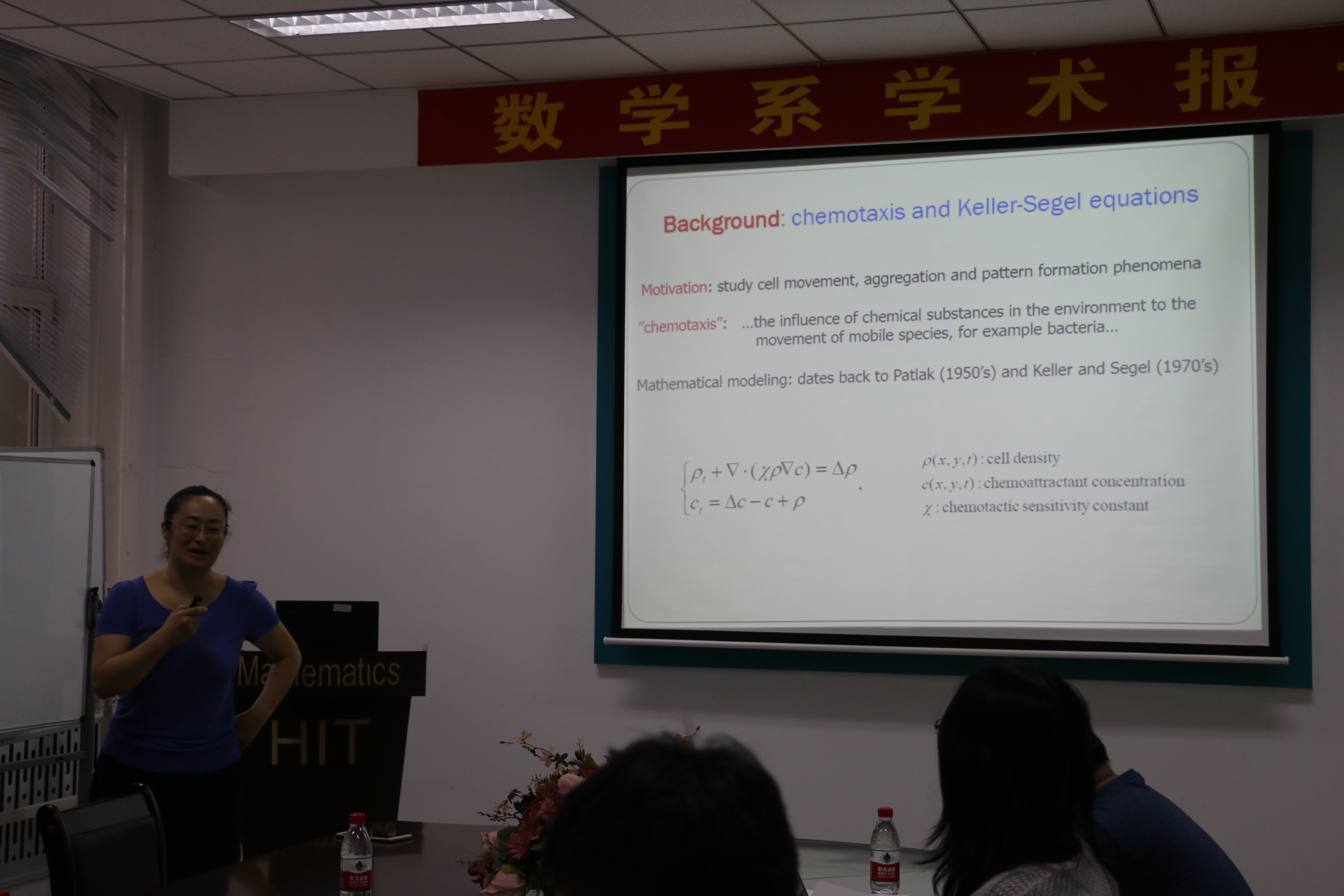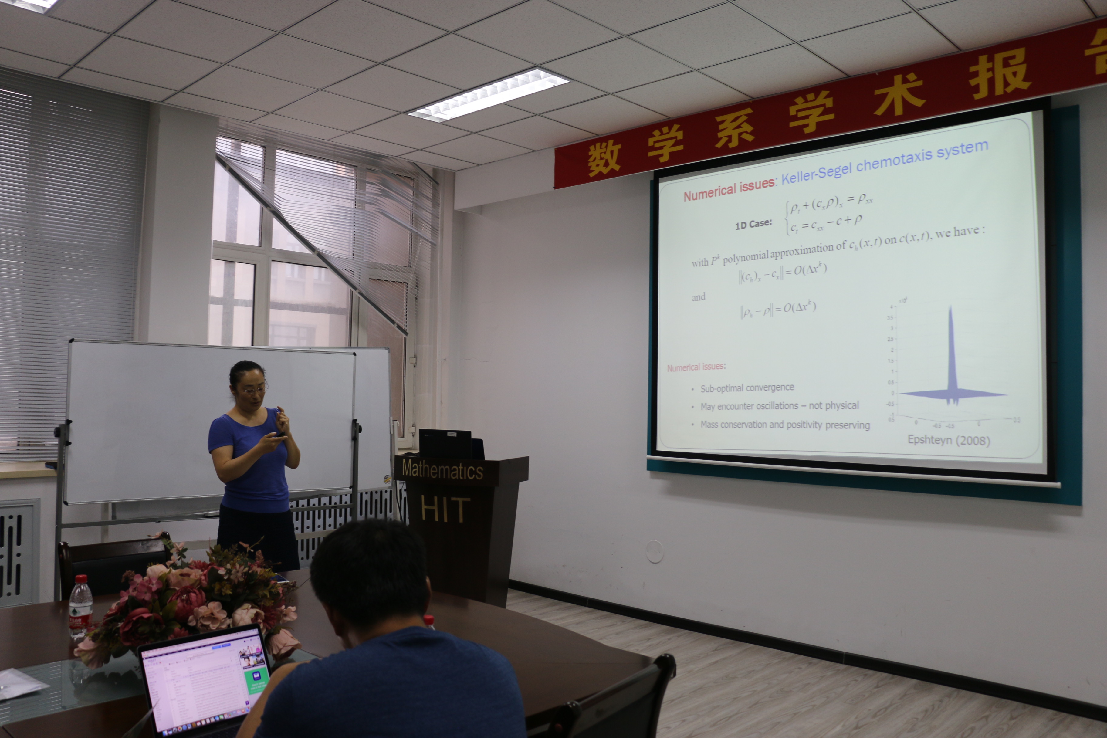 受国际合作处资助,应数学系吴勃英教授和数学系与数学研究院孟雄副教授邀请,美国爱荷华州立大学闫珏副教授近日访问了taptap点点,并于2017年7月18日上午9:00-10:30在格物楼503会议室作了题为“Direct discontinuous Galerkin methods for Keller-Segel Chemotaxis equations”的学术报告,报告由孟雄副教授主持,数学系30余位师生听取了报告并进行了热烈的讨论。报告主要介绍了求解KS趋化模型方程直接间断有限元方法的构造与分析。