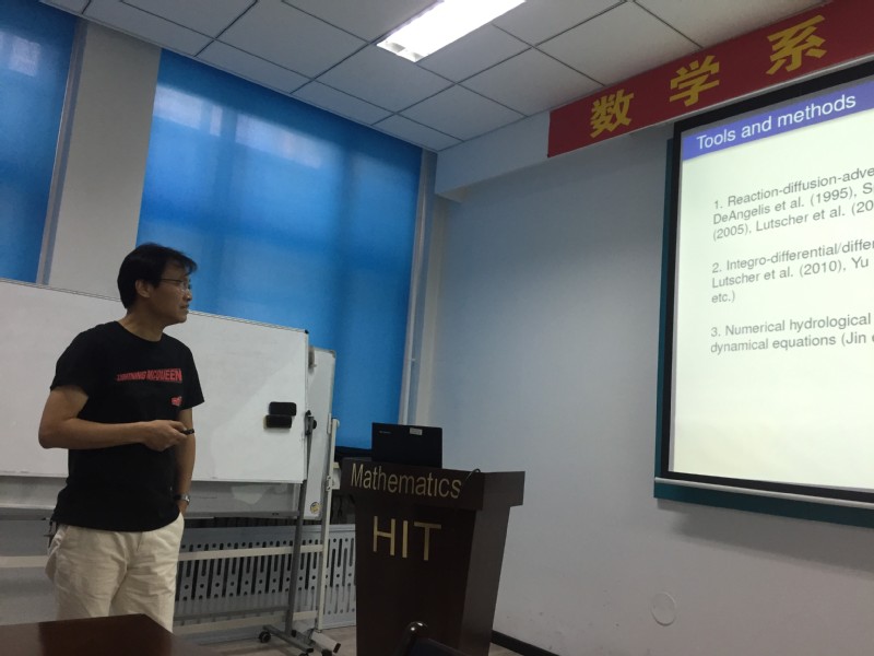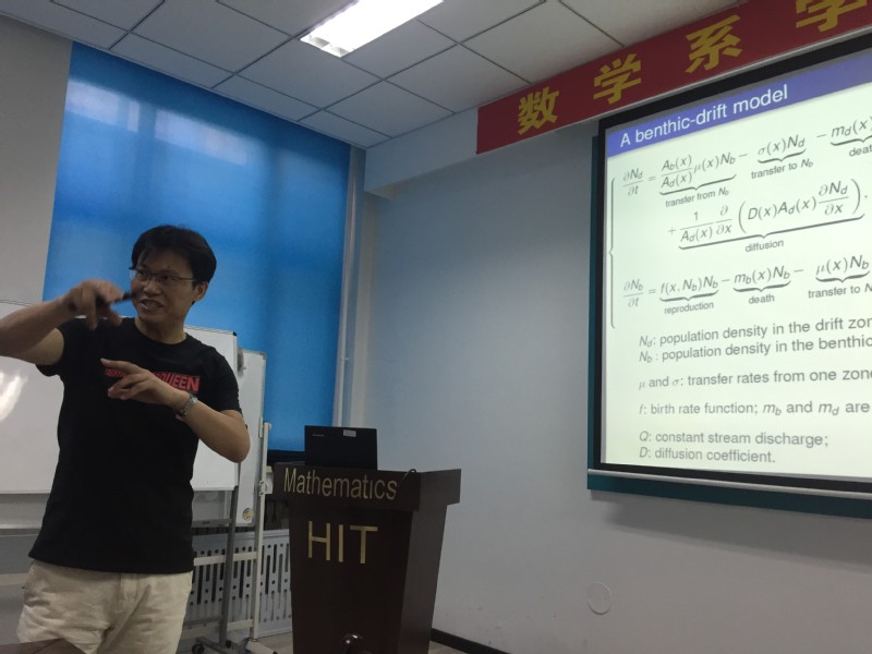 2018年5月17-19日,西南大学黄启华教授来taptap点点进行学术访问,并与5月18日在格物楼503做了题为《R0 Analysis of a Benthic-Drift Model for a Stream Population》学术报告。报告由王春程副教授主持,数学系10余名相关方向的师生听取了报告并进行了热烈的讨论。
