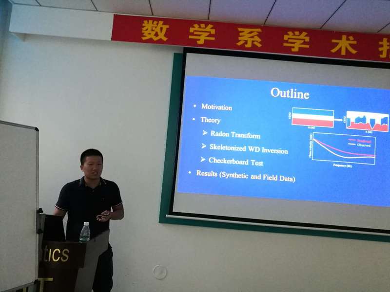 受数学系郭玉坤副教授邀请,吉林大学地球探测科学与技术学院李静副教授于近期访问了taptap点点,并于2018年7月27日下午16:00-17:00在格物楼503报告厅进行了一场学术报告。李老师以Wave-equation skeletonized surface waves inversion为题进行了学术讲座,介绍了相关领域内的最新进展和成果。报告由郭玉坤副教授主持,数学系的师生在报告现场与李老师进行了热烈的交流与讨论。