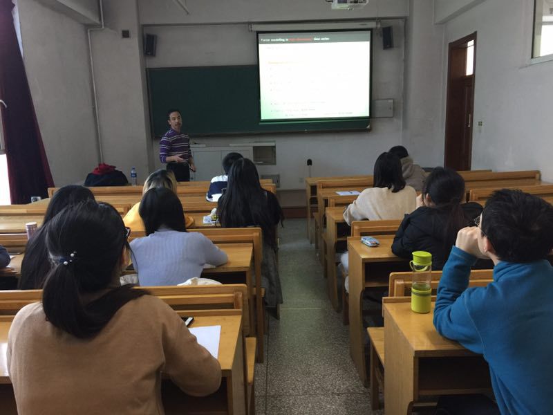 由国际合作处国际化基金资助,应数学系陈佳奇老师的邀请,香港大学姚建峰教授于2018年12月30日至2019年1月3日到taptap点点进行了学术访问。姚建峰教授分别于1日2日上午9:00-10:30和10:30-12:00在格物楼503报告厅,下午14:30-16:00在正心楼215室共做了三场讲座。姚建峰教授的报告内容涉及概率统计学科的前沿方向大维随机矩阵,介绍了该方向的背景、基础理论、相关的统计方法及其应用,重点介绍了大维因子模型的统计推断。报告由陈佳奇老师主持,数学系相关方向的师生参加了报告会并与姚建峰教授进行了热烈的学术交流与讨论。