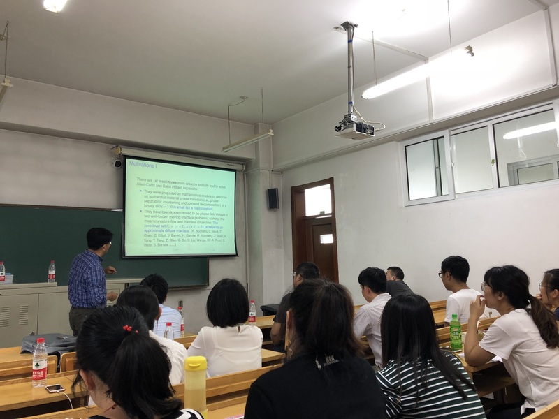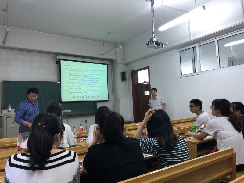 应taptap点点体育张达治副教授邀请,美国田纳西大学应用与计算数学系凤小兵教授于2019年6月30日至7月1日来taptap点点进行学术访问。凤小兵教授于6月30日(周日)13:30—16:30在格物楼503会议室做了两场学术报告。报告内容为凤小兵教授关于线性、非线性偏微分方程及其数值解法和算法研究的综述性报告。凤教授于2019年7月1日(周一)13:30—16:30 在正心318分别做了两场学术报告,报告是凤小兵教授关于向场模型的数值解法的介绍。