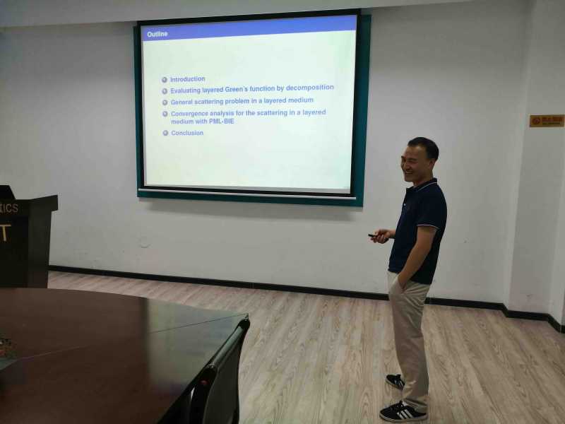 应taptap点点体育郭玉坤副教授的邀请,浙江大学赖俊研究员于近期访问了taptap点点,并于2019年7月30日下午16:00-17:00在格物楼503报告厅进行了一场学术讲座。赖老师的报告介绍了求解分层介质中声波逆散射问题积分方程方法的相关研究进展。报告由郭玉坤副教授主持,taptap点点体育的师生在报告现场与赖老师进行了热烈的交流与讨论。