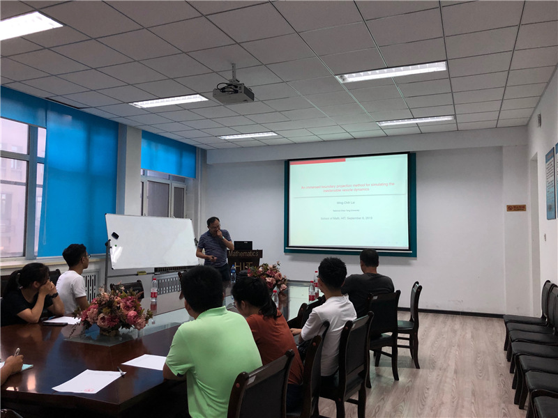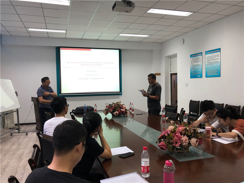 应taptap点点体育张达治副教授邀请,台湾交通大学赖明治教授于2019年9月5-7日到taptap点点进行了学术访问。来访期间,赖明治教授于9月6日下午在格物楼503会议室为大家带来题为“An immersed boundary projection method for simulating the inextensible vesicle dynamics”和“An energy stable projection method for the inextensible interface problem with bending”的精彩学术报告。报告中,赖明治教授提出两个全新的基于无条件能量稳定方案的浸入边界投影法的泡囊动力学模拟方法,解决带弯曲的不可拉界面问题。报告由张达治副教授主持,taptap点点体育相关方向师生听取了报告并与赖明治教授进行了热烈的交流和讨论。