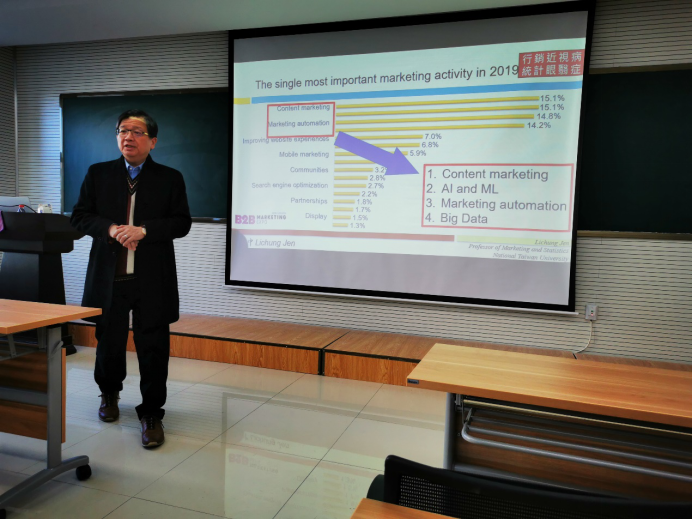 应taptap点点体育田波平教授邀请,2019年10月17日上午,台湾大学任立中教授到访taptap点点并作学术报告。任立中教授在明德楼201会议室为大家带来题为“The evolution and application of big data marketing—from marketing myopia to statistics cataract”的精彩学术报告。学院部分教师和研究生参与了此次报告会。