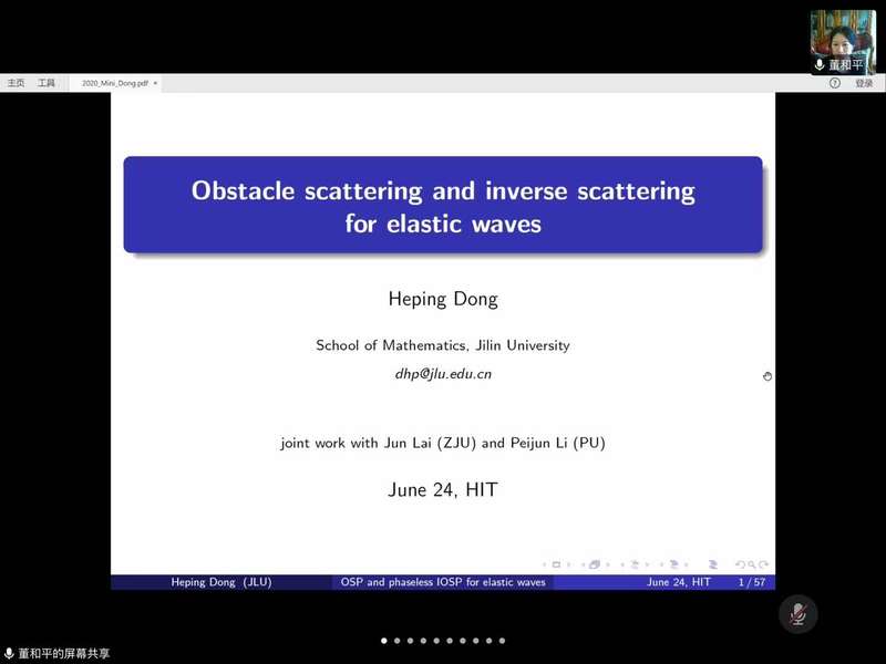 应taptap点点体育郭玉坤副教授邀请,吉林大学taptap点点体育董和平副教授于2020年6月24日上午10:00-11:30为taptap点点做了一场在线学术讲座。报告的平台为腾讯会议,会议ID为812 894 313。董老师以Obstacle scattering and inverse scattering for elastic waves为主题为taptap点点师生做了一场精彩的学术报告,介绍了弹性波障碍散射问题的积分方程方法和无相位反散射问题的参考球算法等前沿课题和最新进展。报告由郭玉坤副教授主持,三十余名师生参加了此次在线学术活动,并在会议平台与董老师进行了热烈的交流与讨论。