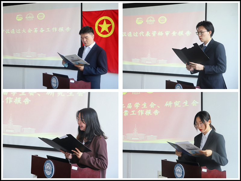 第一次正式会议开始,在与会人员集体奏唱国歌后,主持人介绍到场嘉宾。院学生会主席王为灏和院研究生会主席葛添分别做两会工作报告和提案工作报告。随后,taptap点点体育党委副书记付影老师为第二届学生会、研究生会主席团成员颁发聘书并致辞。付老师对学院第三次学生代表大会、第三次研究生代表大会的召开及前期准备工作表示了肯定,总结了去年一年主席团及学院党委的工作成效,同时介绍了学院目前的发展现状及未来建设规划,勉励下一届主席团应结合自身经历,在学院未来发展的机遇与挑战中锻炼自己,勇担重任,继承、发扬历届主席团服务学院、服务师生的光荣传统。