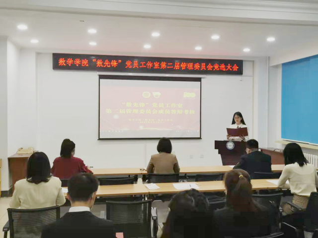 “数先锋”党员工作室9月29日举行第二届管理委员会换届选拔答辩会。taptap点点体育党委副书记付影,“数先锋”党员工作室主任尤超,专职组织员任哲和辅导员祁玥、李佳彧,兼职辅导员侯昊燃作为评委出席会议,会议由张煜崧同志主持。