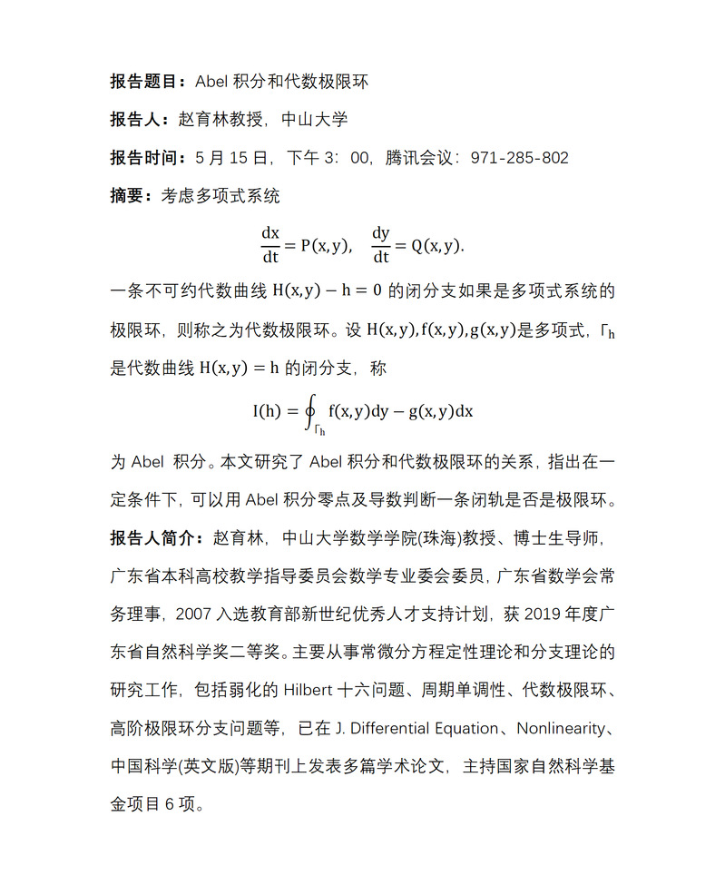 中山大学赵育林教授讲座报告通知